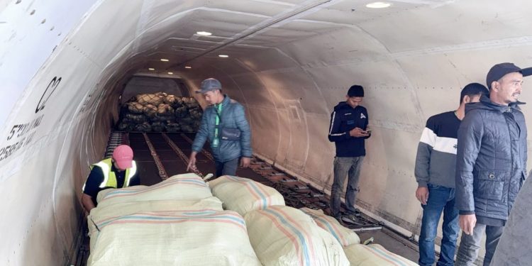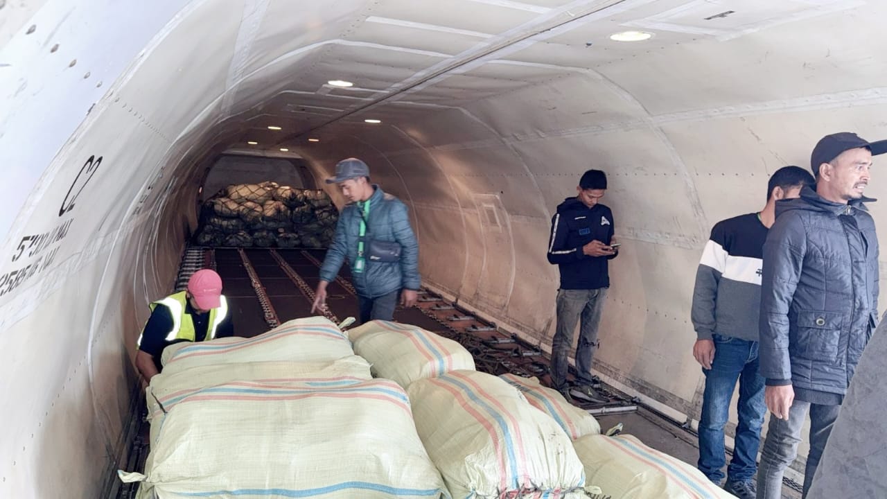 BENER MERIAH, GEMAPERS.COM— Produk hasil bumi dari dataran tinggi Gayo mulai meramaikan pasokan sayur-mayur di Pasar Induk Kramat Jati, Jakarta Pusat. Sebanyak 13 ton komoditas pertanian diberangkatkan melalui jalur udara menggunakan pesawat Aero Nusantara Cargo (ANC) milik Badan Nasional Penanggulangan Bencana (BNPB), Kamis (8/1/2026).