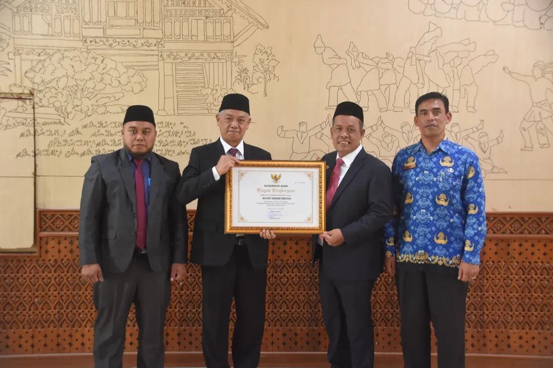 Piagam penghargaan itu diserahkan oleh Pelaksana Tugas (Plt) Sekretaris Daerah (Sekda) Aceh, M. Nasir, S.I.P., M.P.A., yang mewakili Gubernur Aceh, Muzakir Manaf kepada Wabup Bener Meriah Ir. H. Armia.
