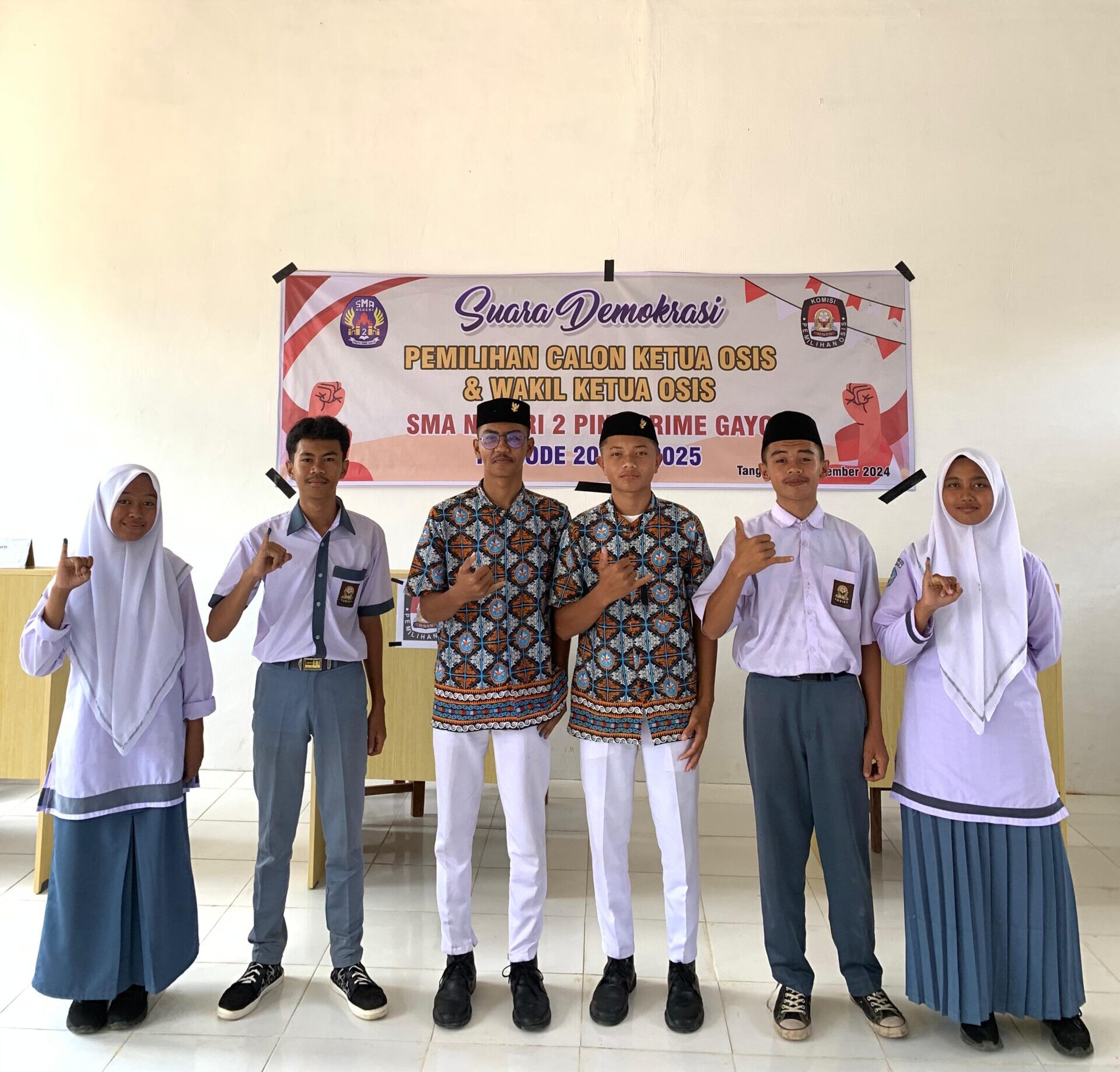 Pemilihan OSIS di SMAN 2 Pintu Rime Gayo merupakan salah satu contoh nyata penerapan nilai-nilai demokrasi dilingkungan sekolah. Proses pemilihan ini melibatkan seluruh warga sekolah dalam menentukan Ketua OSIS secara langsung, dan memberikan kesempatan bagi setiap siswa untuk berpartisipasi secara aktif dalam pemungutan suara. Kegiatan ini juga merupakan bagian dari penerapan Projek Penguatan Profil Pelajar Pancasila (P5).