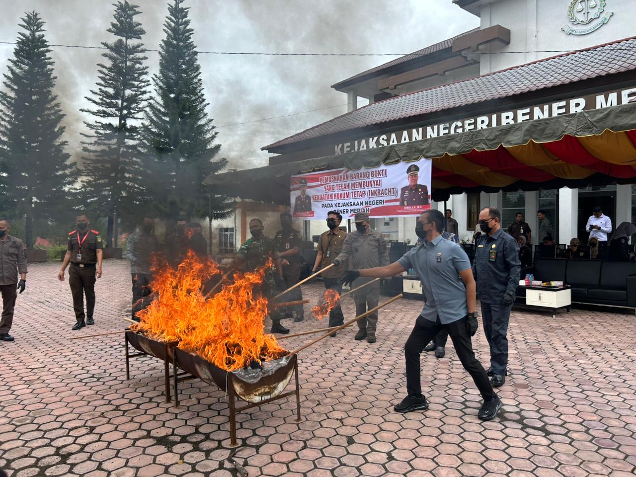 Pemusnahan Barang Bukti Yang Telah Memiliki Kekuatan Hukum Tetap (INCRACHT) di halaman Kejaksaan Negeri Bener Meriah, Kamis (13/11/2025). Foto : Ist