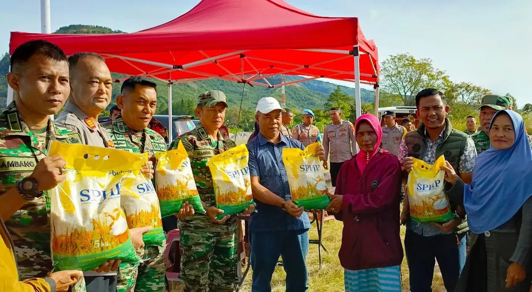 Turut hadir Plt. Sekretaris Daerah kabupaten Bener Meriah, Armansyah, SE. M. Si., didampingi dandim 0119/BM yang diwakili Kasdim 0119/BM, Mayor. ARH. Nasrib., Camat Bukit, Syahrian, S. STP., Danramil Bukit, Kapten. Czi. Aep Mukhran Halid., Kapolsek Bukit, AKP. Selodeilen., Perwakilan Bulog, Subhan Rizki., Perwakilan Dinas Perdagangan Kabupaten Bener Meriah. (Ril)